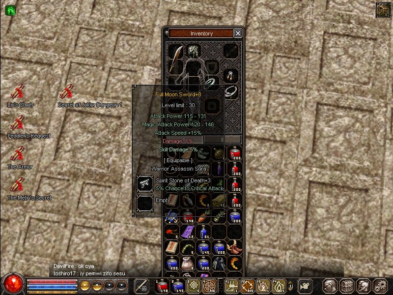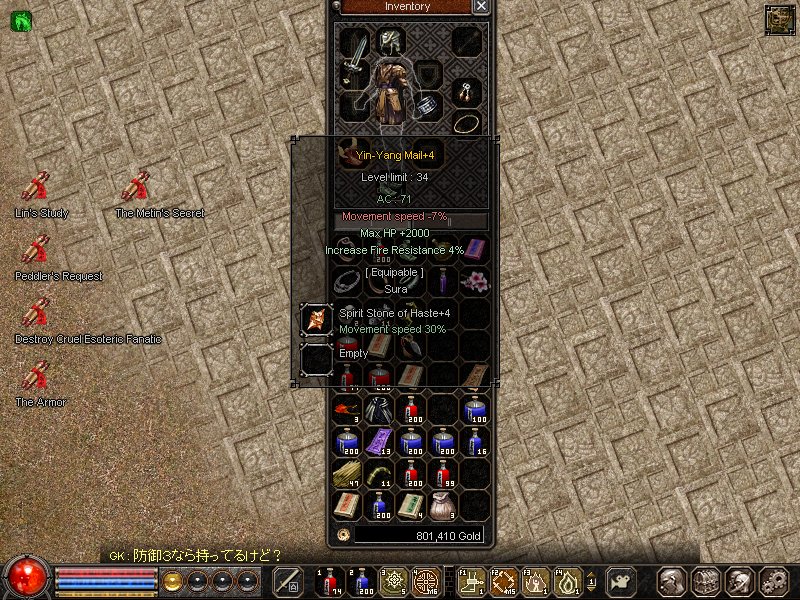 前回の更新の時に書いた36片手+8に致命+3と呪文+3をハメハメしようとして致命+3のみはまる。 転売用に買っておいた貝が@2個あったのでノリで+9に挑戦して見事に燃える 更に白金腕+7も叩いて燃える… 更に安い貝が売っていたので黒檀耳+7も叩いて燃える^0^ これはやべぇwwwww ちょっと凹みながらサブで石割りしていると久々にFMSがDrop。 石を割り終わった@に見てみると… skill14%ktkr!!!! 今まで確認してた最大値が12%だったのでかなり嬉しかった。 でも・・・+5→6で燃えwwww 6になったら石ハメしようと思ってたのに・・・ 最初に書いた4つの品が燃えた事よりもこいつが燃えたのが1番ショックだったぜ・・・ |