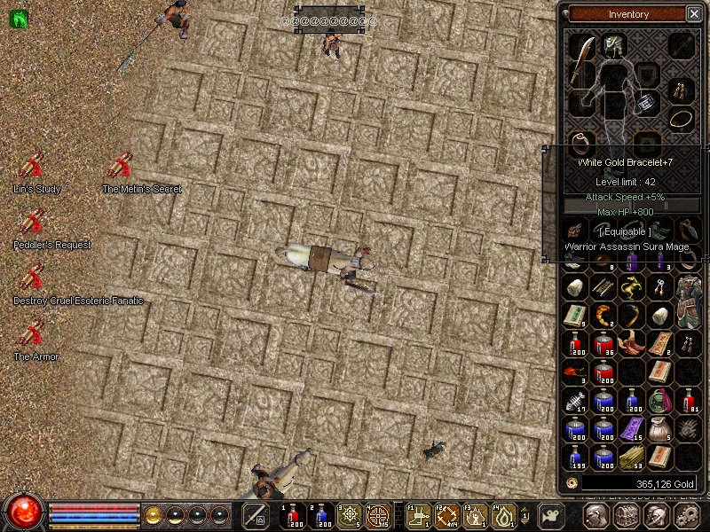 そしてメイン装備の建て直しにやっきになってたんですが・・・ 一向にできませんorz 孟も黒檀耳も燃える燃える・・・南蛮+7も当然のごとく燃える。 石も砕ける砕ける・・・ 更に修羅42鎧+7(移動石+4付)をそのまま叩くという暴挙に出て見事玉砕。 一旦破産しかけるも族長の箱から出た盗賊の手袋をサブに使って石割りまくって1.5まで回復。 その後RIB+4(dmg21%skill-2%&気絶2%貫通3%に貫通石+3付)を900kで購入し 石割りのスピードを更に加速っ サブに少し金が貯まってきたのでDrop処理の為に村に戻る度に叩いてたら+8まで育つ・・・ そして現在2.3Mまで回復&八方2冊持っているので3M超えは確実。 露店で南蛮+4(致命10%)が50kで売っていたので即購入、せめて+7まで育ってくれよ・・・ 状況的にはこんな感じ。 @谷の入り口にいる侵略弓からFMSがDrop、確率的にはかなり低いんだろなw そういえば他国で露店を出している時に日本人同士で話てるのを見て少しうらやましかったでっす