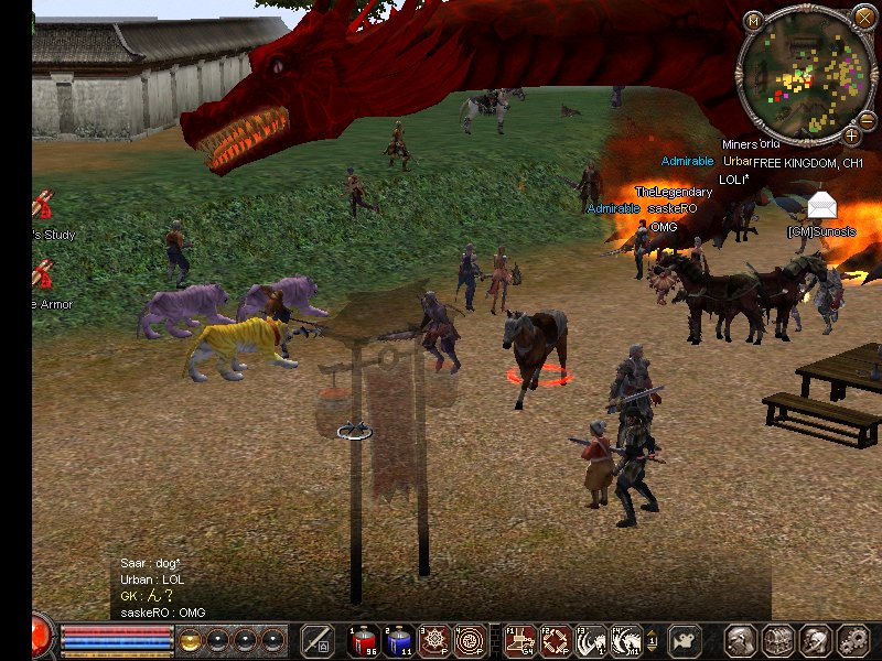 修練は闘魔がG5に。 魂石が早いペースで成功している為、後半が辛いのは確実。 改良はギルメソにもらった21兜+6が9まで育ってくれたのでようやく兜作成が終わる・・・長かったー 先日ドロップした修羅42鎧(呪速20%)も奇跡的に+8まで育ってくれてウマウマ。 多人数での戦争時に使おうかと。 しかし・・・武器は一向に育つ気配が無く、鬼牙の在庫も仮のメイン武器として石をはめた+6を除くと +7が1本のみに。 また鬼牙買い集めないとなorz と、現状はこんな感じ。 @は先日GMが光臨した際に変身しまくってたのでSSでも。 まずはいきなりの赤竜正面、大きさはこんなくらいで空飛んできます。 同じく赤竜の首側面・・・長いなぁ お次は亀なんですが・・・砂漠の亀とちょっと違うような。 最後に名前がわからんけど小さい竜 赤竜を小さくするとこんなカンジになるのかな? 他にも白狐っぽいのと野良犬サイズの小さい狐にも変身してたんですが そちらの方は撮れてませんでした。